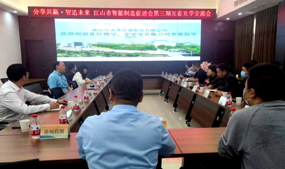 10月22日下午3點(diǎn),江山市智造促進(jìn)會(huì)“浙江江變•數(shù)字化轉(zhuǎn)型歷程”主題分享會(huì),在浙江江山變壓器股份有限公司順利召開。公司總經(jīng)理在會(huì)議上對(duì)江變智能工廠建設(shè)等內(nèi)容做主要分享,江山市智造促進(jìn)會(huì)秘書長(zhǎng)、科潤(rùn)智控、浙江研一、倫寶管業(yè)、三棱塑膠、實(shí)達(dá)實(shí)、開洋木業(yè)、金凱門業(yè)等近二十家會(huì)員企業(yè)代表出席會(huì)議,會(huì)議特邀江山市經(jīng)濟(jì)和信息化局、江山經(jīng)濟(jì)開發(fā)區(qū)領(lǐng)導(dǎo)。